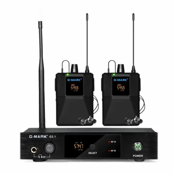 Trådløs In-Ear Monitor G-MARK G2.1 IEM UHF Scene Retur Studio Frekvensvalgbar for Gitar Band, Opptredener og DJ-fester