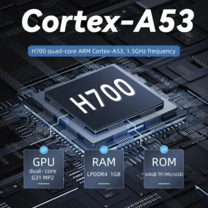 H700 quad-core ARM Cortex-A53, 1.5GHz frequency |