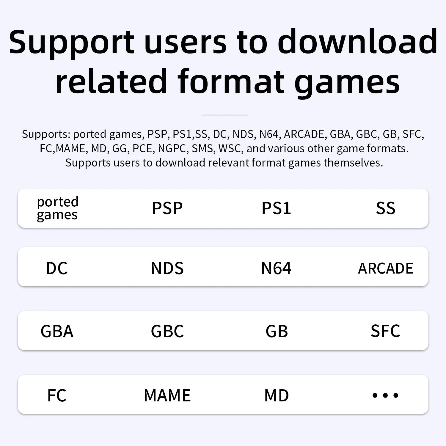 RG 40XXV handheld game console, support more than 10 game format . supports users to download games in related formats themselves. supports Dual card slots, support TF card expansion, maximum 512GB.