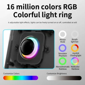 Supports RGB lighting effec,16 million color RGB joystick lighting, support constant light, breath, rainbow, marquee, chasing, gaming and other light effects, support customize the color and adjust the brightness.