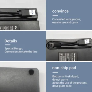 • External Installation Method :With its external installation method, this DVD RW drive can be easily attached to your device, offering flexibility and convenience.